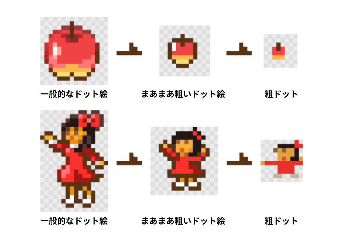 「像素风」一直都被当做是复古设计的代表之一,尤其是在游戏领域,吃豆人、街霸、拳皇、超级玛丽,星露谷物语等等。粗点是指使用尽可能低的分辨率来实现最抽象的像素艺术。尽管进行了抽象化,但粗点仍然充满了信息,它在游戏图形中实现了「逆进化」(即最终的抽象化)。